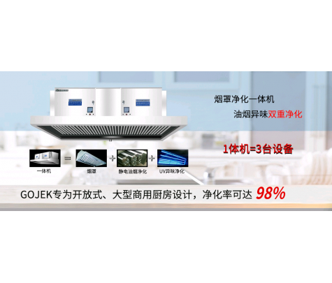 GOJEK受邀为东莞三正半山五星级酒店打造一个高效油烟净化系统,采用了GOJEK120000高效静电油烟净化器、UV光解油烟除味器,净化率可达98.4%!
